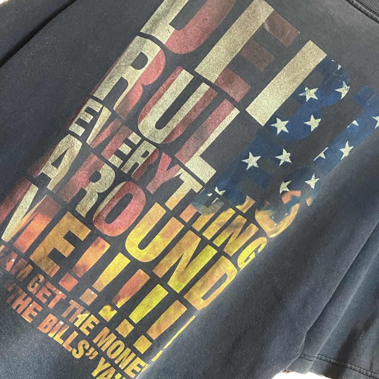 90s LAデザイナー限定 DISSIZIT 1st pigmentT premiervintage LAグラフィティ界の奇才Slick(スリック)がLAで主宰する ハンドグラフィックを中心としたウエアブランド DISSIZIT の、1st start UP pigmentTです、 スリックは、90年代からアパレルの世界に進出し、FUCTで一躍有名に。 後にShaolinを起こし、今はAdopeDistributionを立ち上げDISSIZSLIX、 SHAOLIN WORLDWIDE、STRIPTEASE、DUMORと云った多数のブランドを抱えています。 また、StussyやX-Large等のブランドにもデザインを提供しており StussyのWorld Tour Teeのデザインに参加した事も記憶に新しいです。 ゆるっとした!サイズに、圧倒的なデザインは、 どなた様でも、すぐ着こなせます、 また、Tシャツは、価値が上がるポイントがあります、着込んで、育てば、激レアTは、フェード感出れば出るほど価値上がります、ましてや、1stなら、今が、お買い時となります。 あとは、着回し力も魅力!ボトムサイズ変えしたの見て下さい、タイトめでも、ダボめでもいけます、 アメカジ、ストリート、無骨、ワーク様々ちけますね、 【カラー】 ピグメントブラック、かなり、カッコいいです、 表記size L表記ですが、/XLくらいあるので XLとします、 着丈/80 身幅/60 肩幅/60DSbox 袖丈 /40 DSは袖はハンガー採寸 ※多少の誤差は理解下さい 着画ある場合モデル170センチ普通体型M がジャストの私が、着用してかなり、ゆるだぼ、 【素材】 コットン100 【状態】 ピグメントに仕上がったtシャツ、ボロTともいう古着に理解のない方控えてくださいと 言いたいですが、むしろ試したらはまる事は間違いないと思いますので、お試しください。 #LAデザイナーズT #ピグメントT #ボロT #ステューシー #エクストララージ