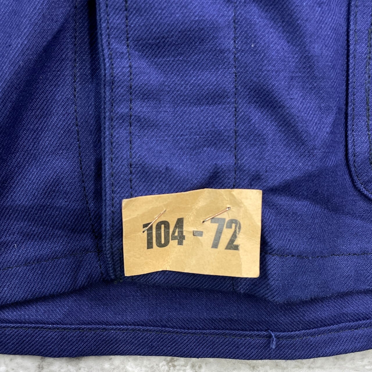 ■DEAD STOCK NOS 60年代 セントジェームズ社製 フランス軍 フレンチワークジャケット メンズXL相当 古着 S.N.C St JAMES カバーオール 60s VINTAGE ヴィンテージ ユーロミリタリー ユーロワーク インクブルー 紺色【ワークジャケット】/ネイビー ◎60年代、セントジェームズ社製のフランス軍ワークジャケット。 シンプルなデザインと堅牢なコットン生地が特徴的。 年代モノなのをまったく感じさせない、フランスらしい上品な雰囲気の漂う一着です。 【サイズ】表記 104 72(着用感メンズXL相当) ※計測値をご確認ください。 着丈…77.5 身幅…62 肩幅…52 袖丈…62.5 【生産国】不明 おそらくフランス製かと思われます。 【素材】不明 おそらくコットンかと思われます。 【状態】デッドストック(新品未使用品)です。 画像にてご確認ください。 【c251018001】 ※古着は洗濯、検品などのケアを行っております。(新品・デッドストックは洗濯していません。) ※モニターの発色により実物と異なる場合がございます。予めご了承ください。 ※ 海外直輸入USED品になります。