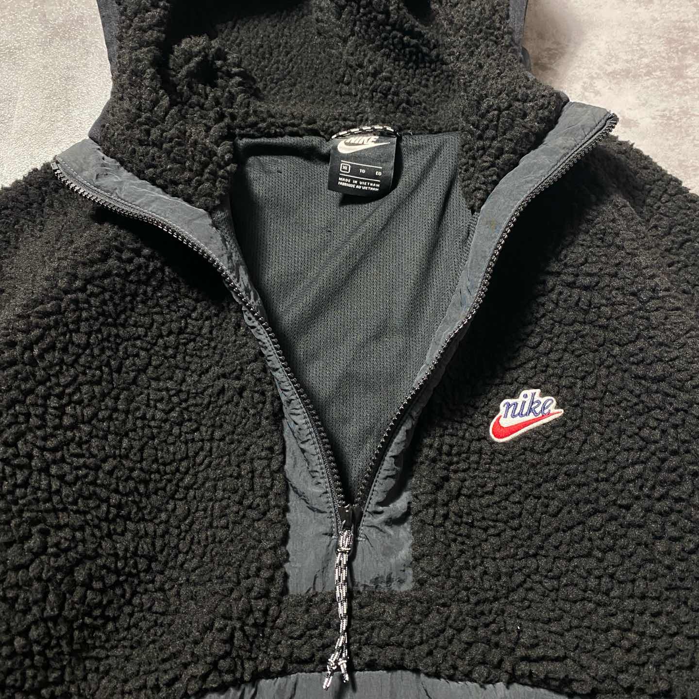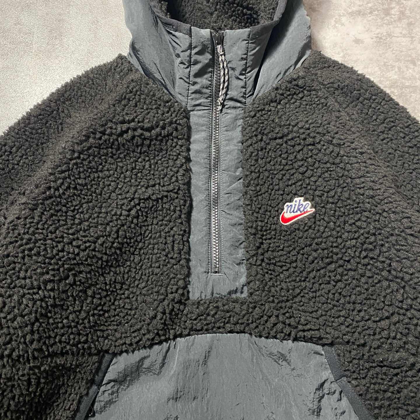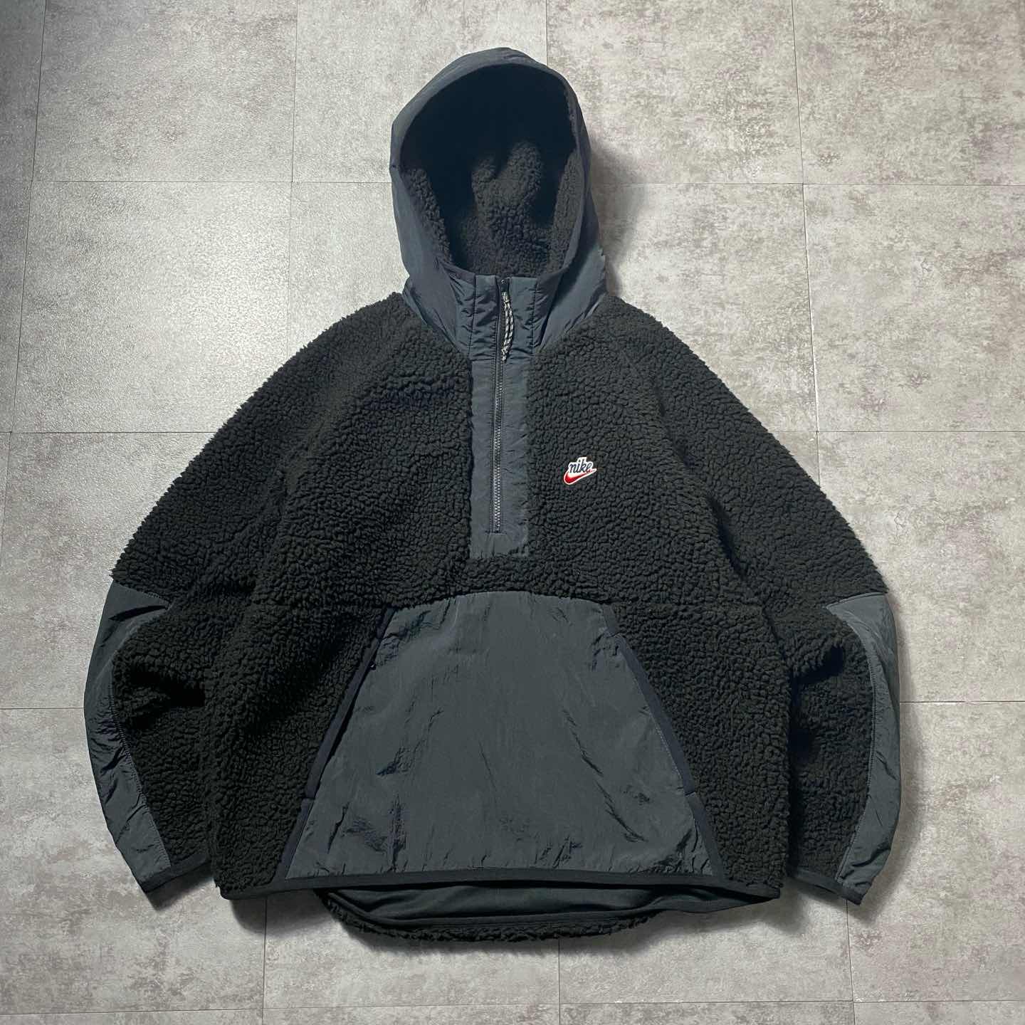 【XL】NIKE スウォッシュ 刺繍ロゴ ハーフジップ ボアフリースパーカー