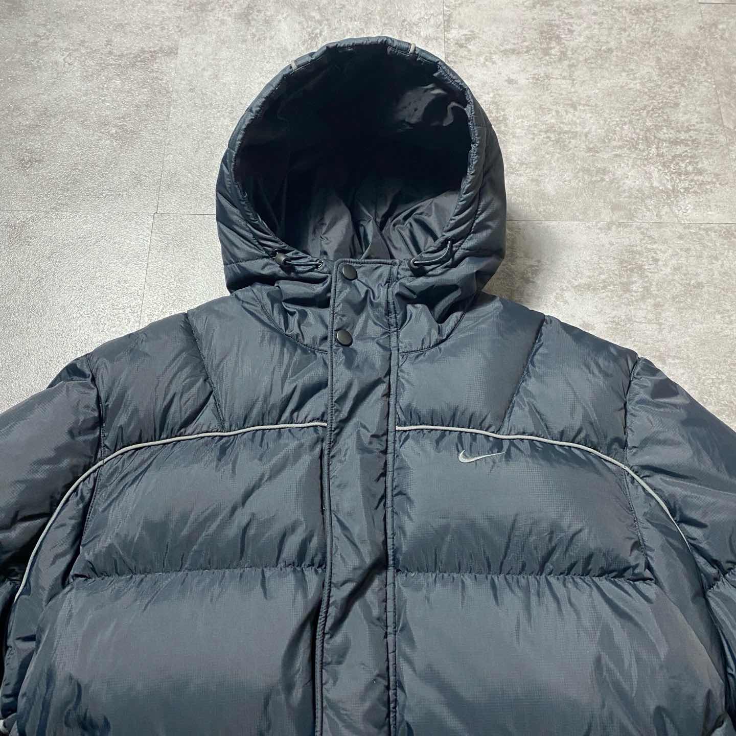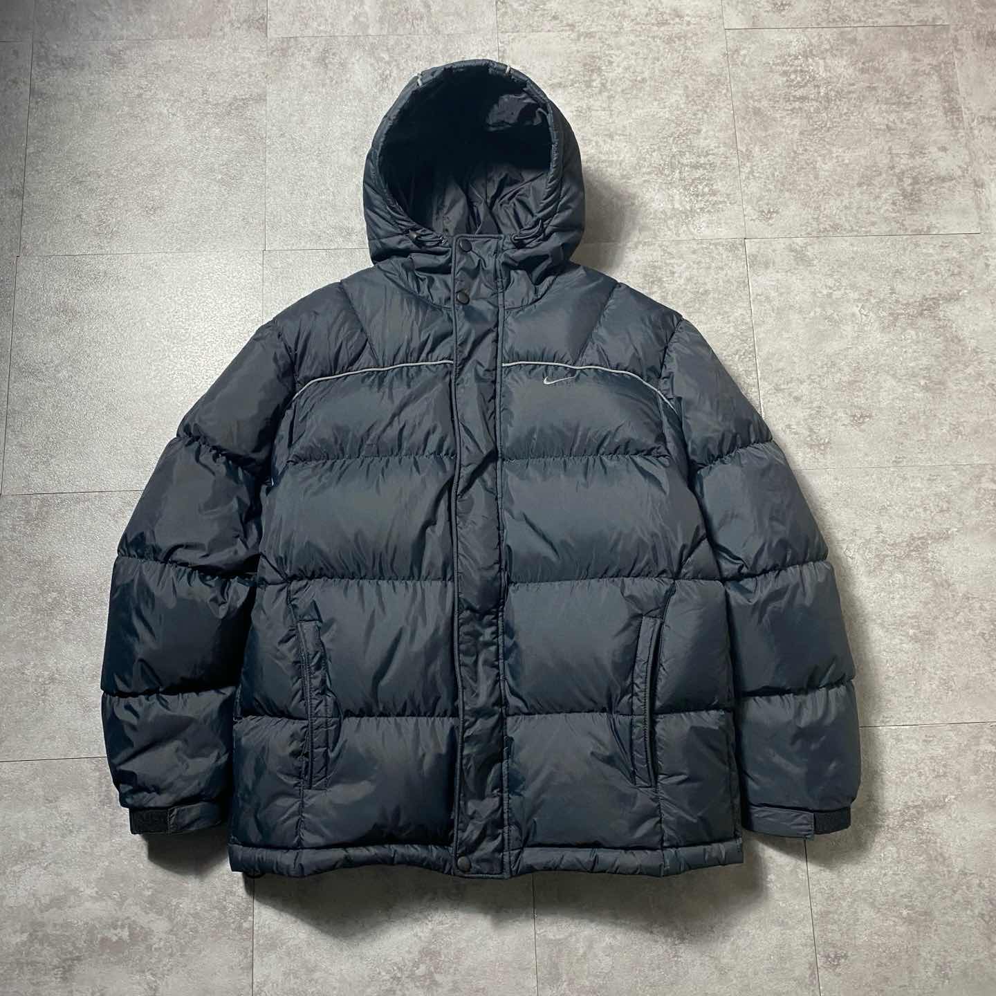 00's NIKE スウォッシュ 刺繍ワンポイント フード付 ダウンジャケット