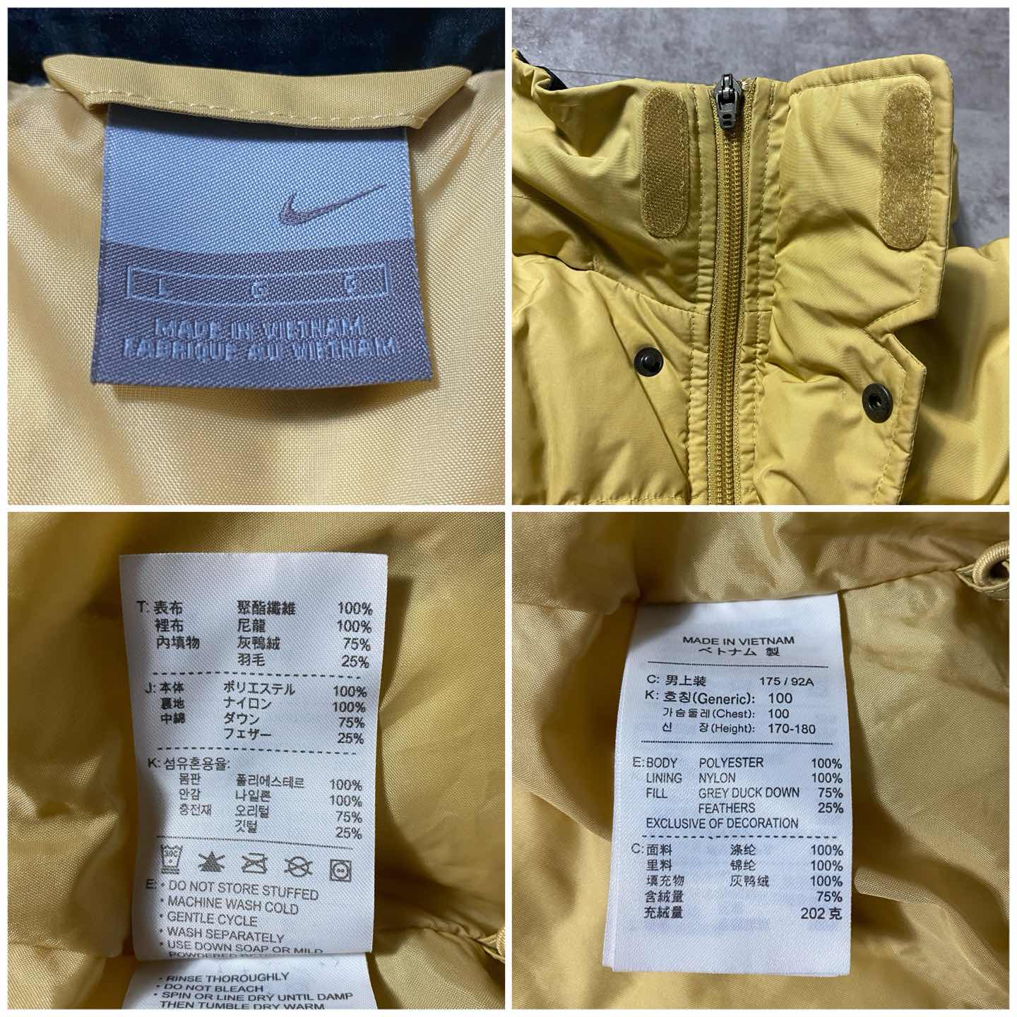 ○Size○ 表記→L ・着丈68 ・身幅57 ・肩幅50 ・袖丈62 (cm) ○Color○ ・イエロー、ブラック ○Material○ ・表面→100%ポリエステル ・裏地→100%ナイロン ・中綿→75%ダックダウン 25%フェザー ○Condition○ ・袖先リブのゴム、若干の伸びあり ○Caution○ 当店で取り扱っている商材は全て『古着』となっております。 そのため、多少の状態難(ほつれ、傷、汚れ、リブの伸び、使用感、擦れ、色あせ、etc)がある場合がございます。 新品同様の完璧なお品物をお求めの方は当店でのお買い物を控えて頂きますよう宜しくお願いします。 また、購入された商品に関しましては、購入日時から起算して『72時間以内に』発送手続きの方を取らせて頂きます。 お急ぎの場合は購入前に当店オンラインストアの方にお問い合わせ頂きますよう宜しくお願いします。 25/1828
