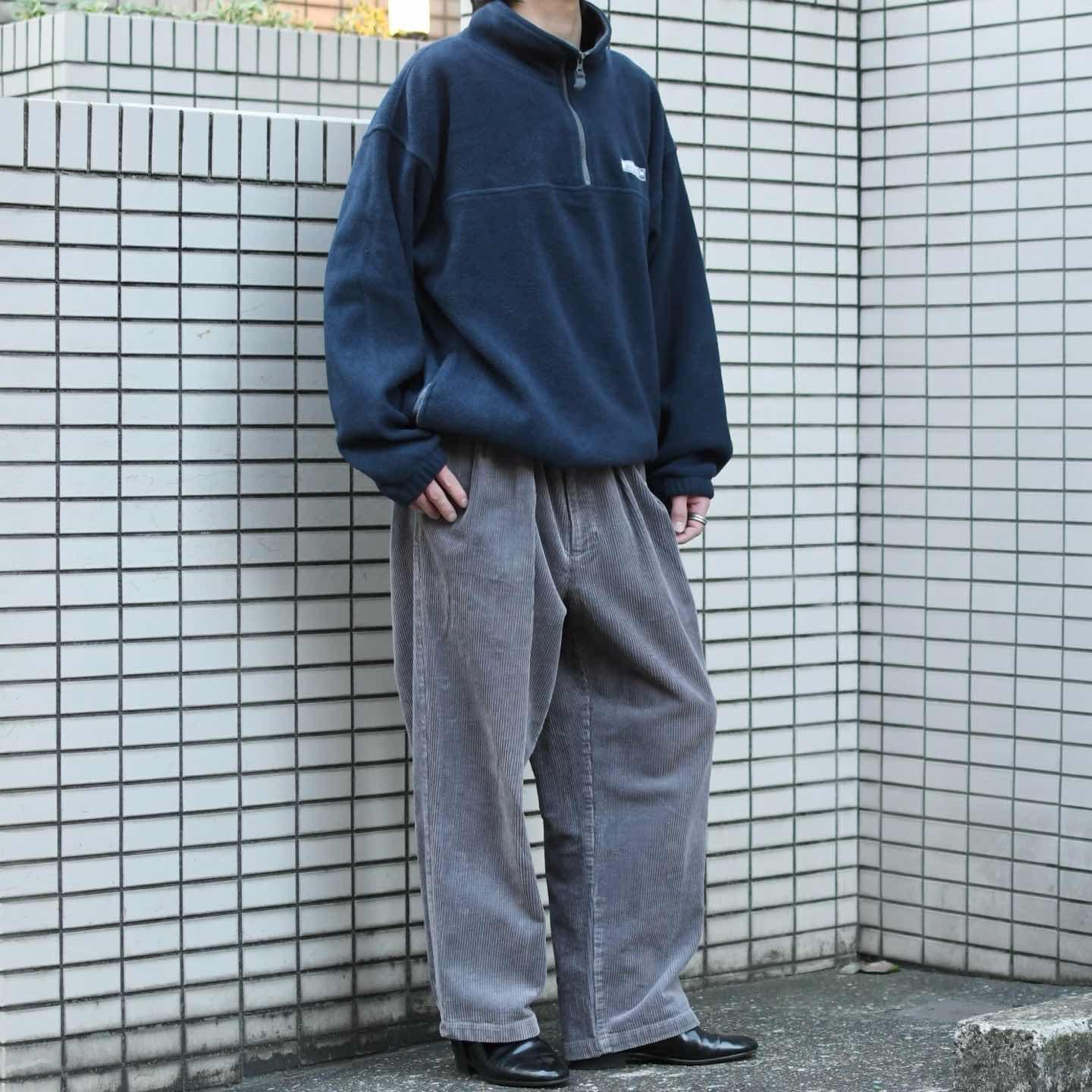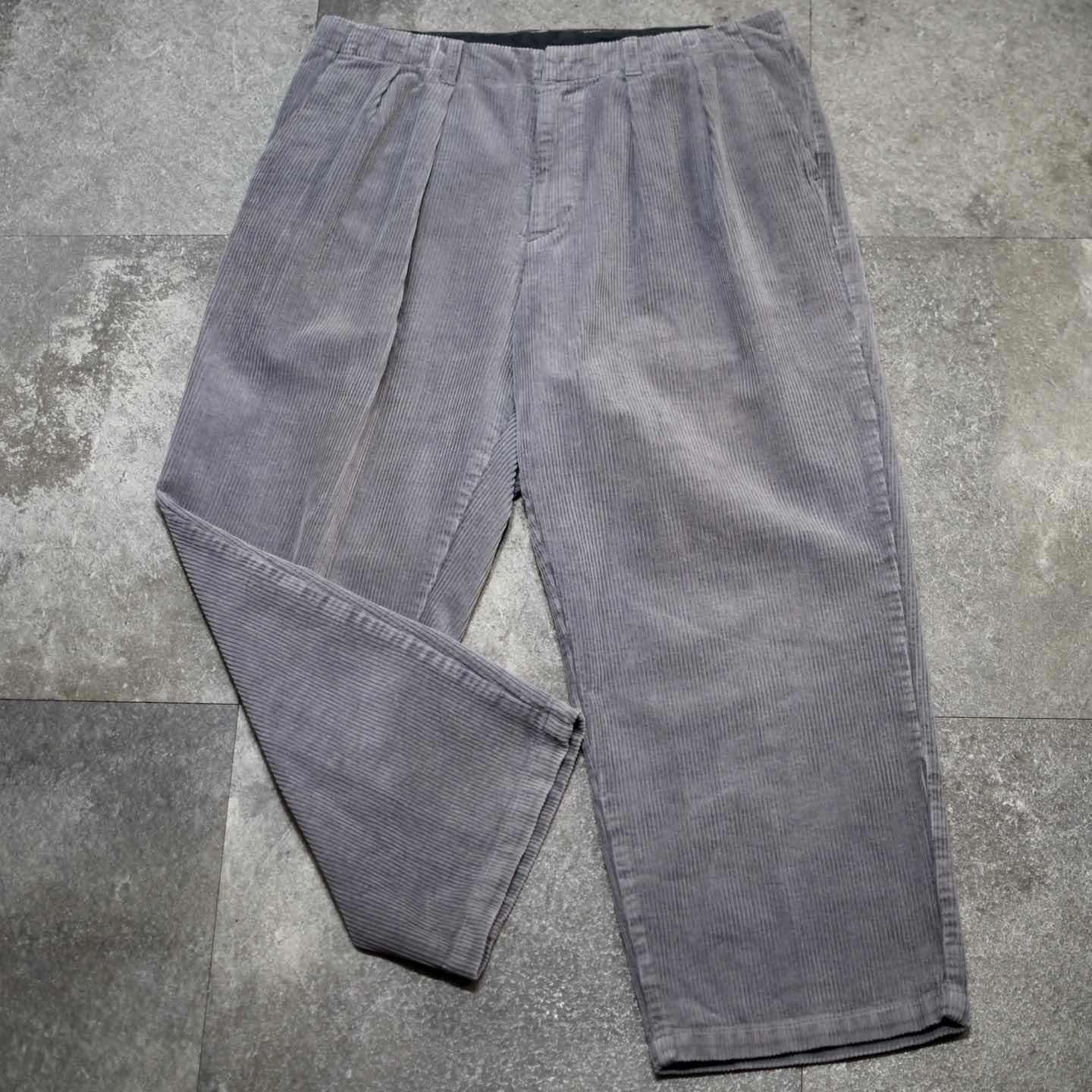 古着 グレー コーデュロイパンツ ワイドパンツ スラックス タックパンツ 灰色