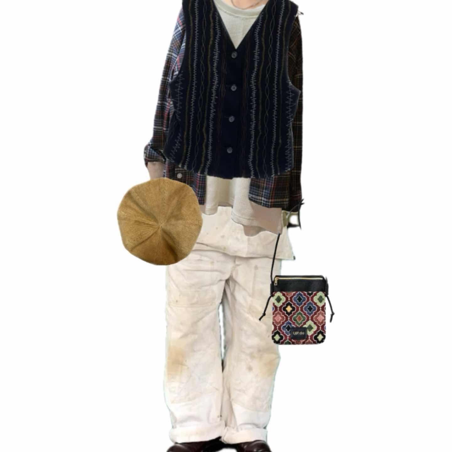 70s 美品 craftsman made ノイズ刺繍 vest 季節関係無し、超上質な、ベスト チェックポイントは、フロントに施された、ラインステッチ刺繍、確実ハンド刺繍のため、 職人が、関わってます。ノイズ刺繍ともよばれる、手間かかる奴 さらに。スクエア系ネームに、ゴールデンラインの、丈シルエット、70-80確定!! し、か、も、美品!! センスが、上がる1着 この機会に試してみましょう!! ▷color◁ 写真通り、 ※ブラウザで異なる場合ありますがかなり実物には、近づけてます、 ▷size◁ 平置き片面採寸【㎝表記】 表記size L くらい 着丈/62 ゴールデンラインといわれる丈 身幅/52 肩幅/ 袖丈 / DSは袖はハンガー採寸 ※多少の誤差は理解下さい 170/Mジャスト体型の私が着て、✔️参考に ジャスト オーバーサイズ✔️ ビックサイズ インナーフリー仕込んでます。 参考に、 【素材】 ボディポリ 刺繍ウレタン 【状態】 よい、美品 検品、洗濯、検品で、3回チェックして発送しますので、ご安心して、お買い求め下さい!!